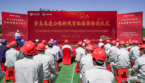 首榀箱梁架設(shè)儀式現(xiàn)場(chǎng)